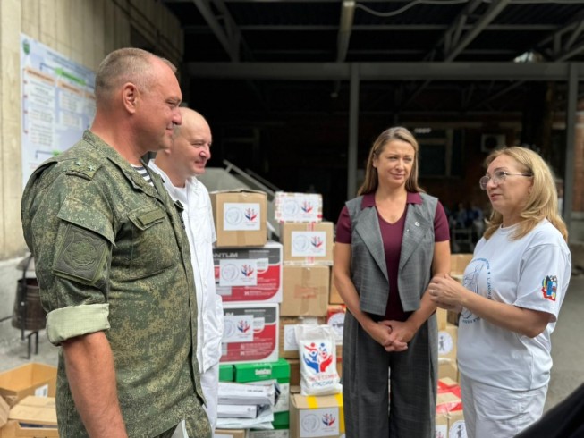 Так 5 сентября на территории 1602-го военного клинического госпиталя Южного военного округа делегация представителей региональных общественных организаций, возглавляемая Ларисой Тутовой и председателем общероссийской общественно-государственной организации «Союз женщин России», телеведущей программы «Вести» на канале «Россия» Марии Ситтель, встретилась с врачами, которые постоянно ездят в командировки на передний край, возложила цветы к памятнику военным медикам. Лариса Тутова и Мария Ситтель передали госпиталю кондиционеры, бытовую и оргтехнику. Вручили бойцам средства первой необходимости.